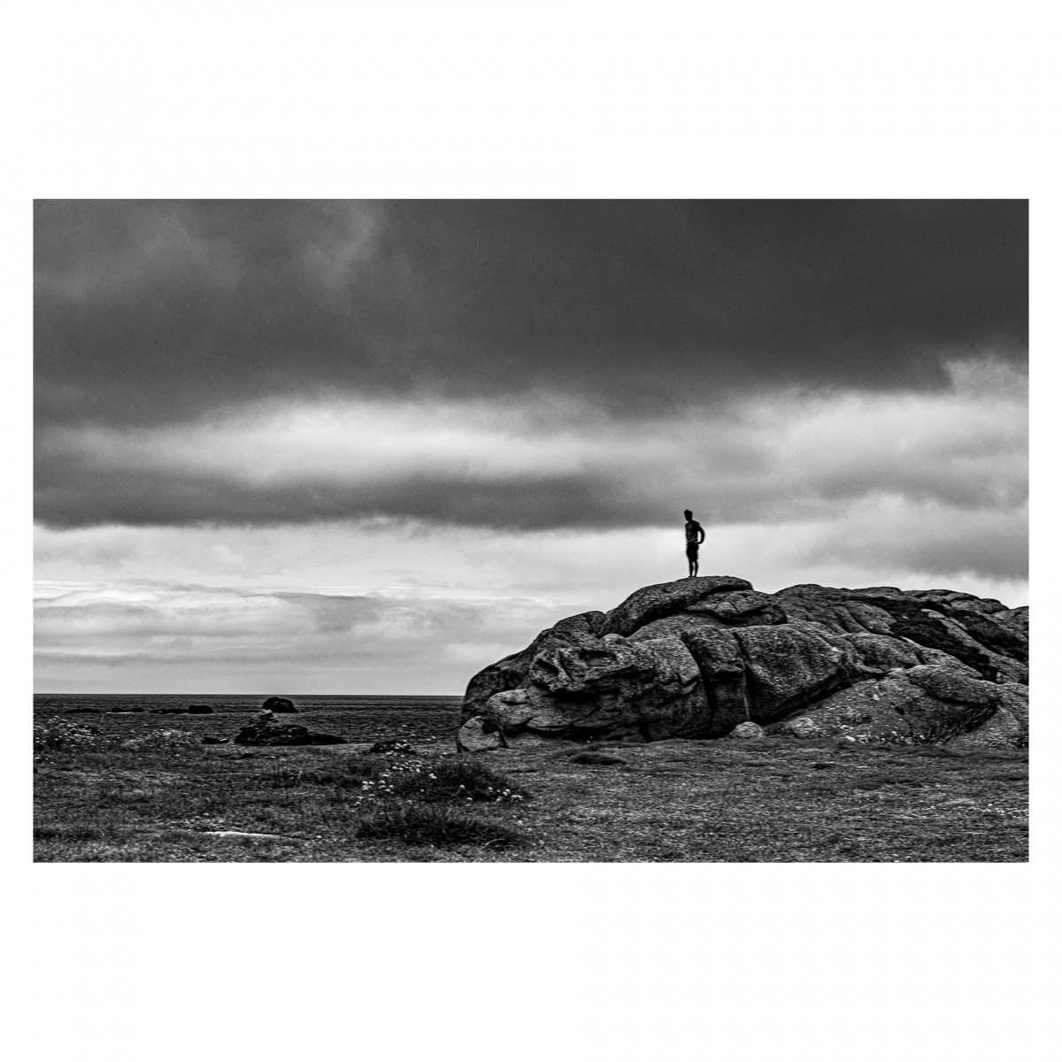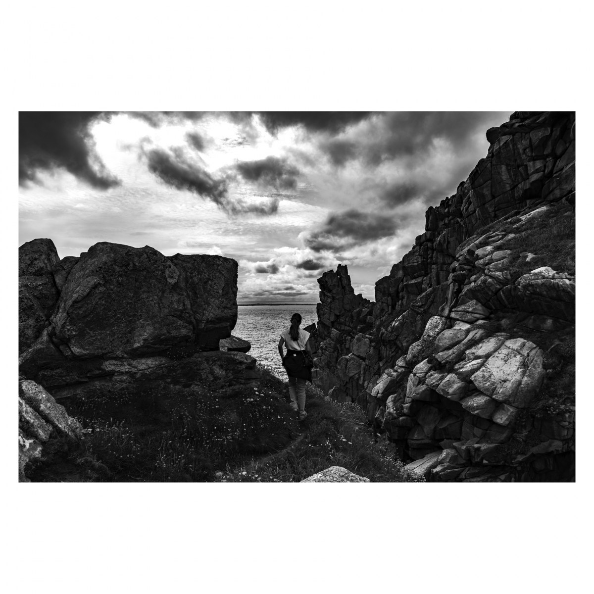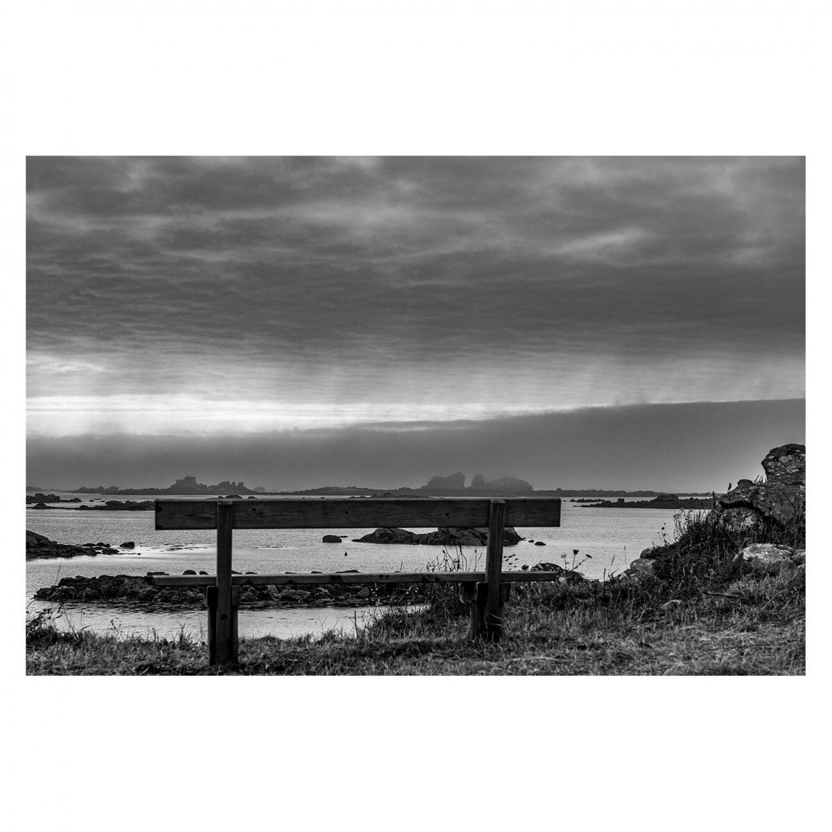 Partir avec l’idée en tête de toujours voir, rechercher des lumières particulières, capter des scènes uniques, des paysages grandioses, c’est ce que j’étais venu chercher en Bretagne. Et bien la météo en avait décidé autrement. Le gris dominait, l’horizon était bouché. Qu’importe c’était beau, il y avait des choses à voir. Le manque de contraste m’a obligé à jouer un peu sur les contrastes lors du développement des photos pour retrouver ce sentiment de plénitude présente dans ces ciels bas et les brumes ascendantes.