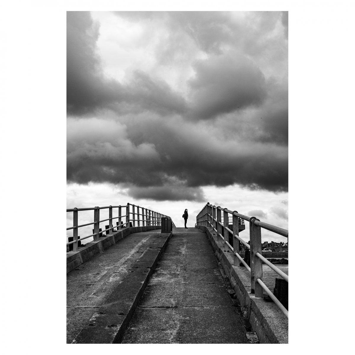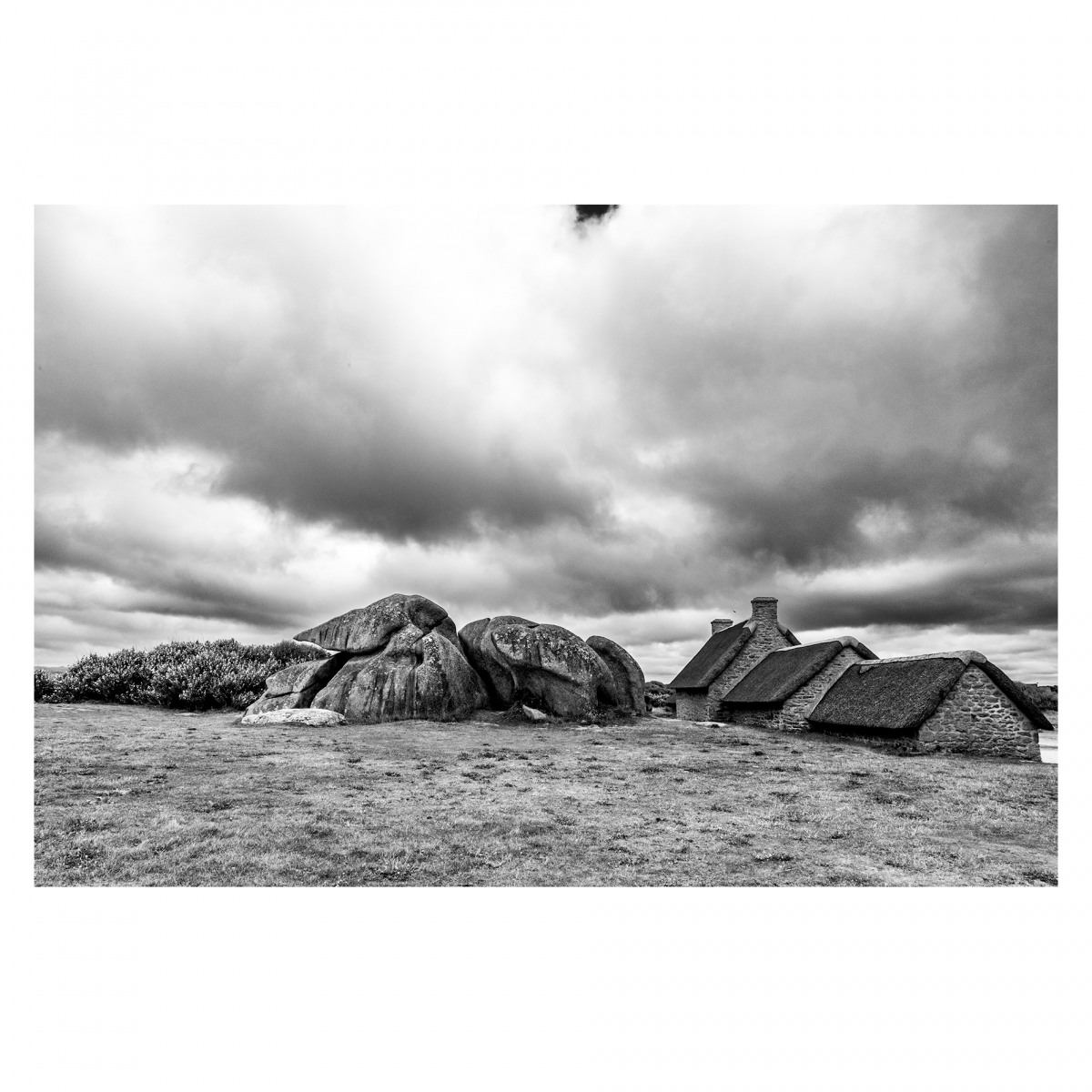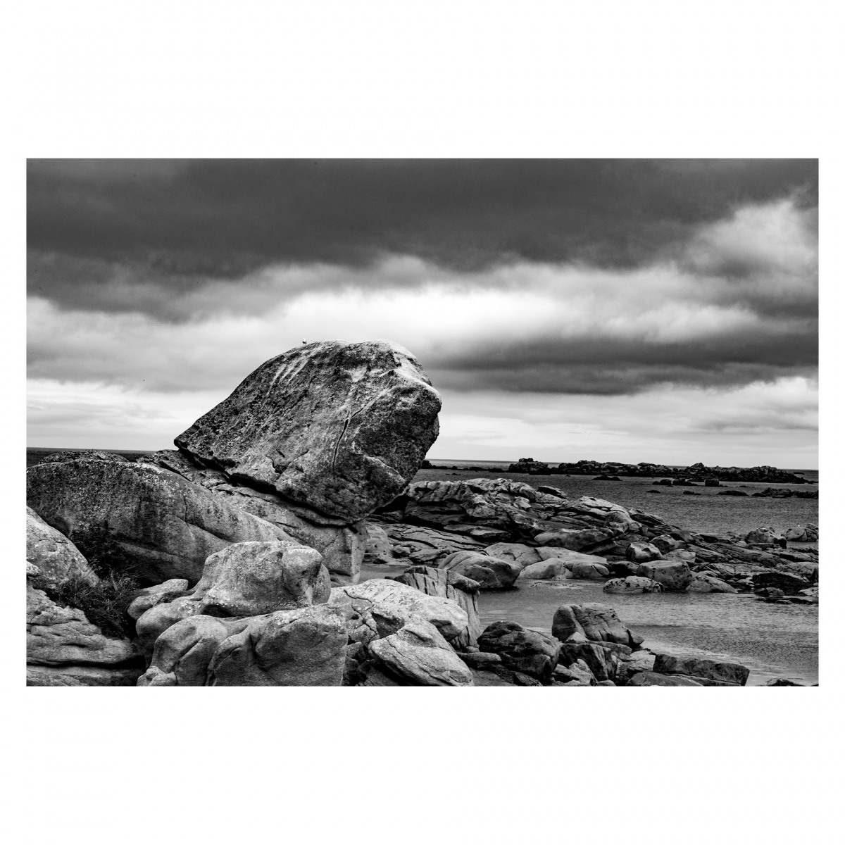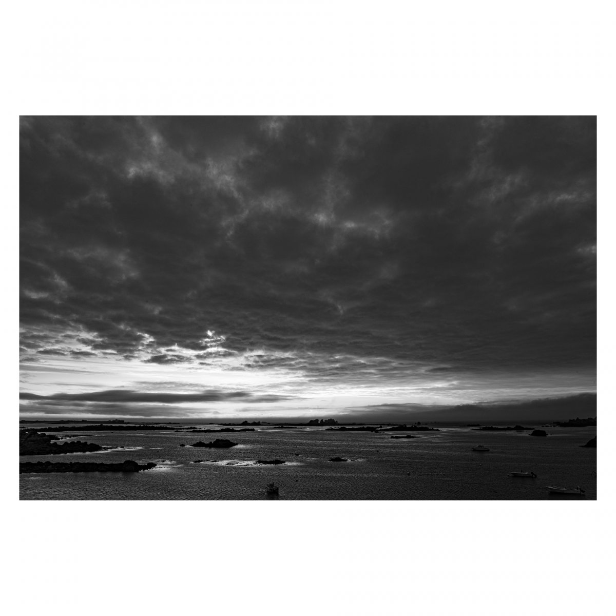 Partir avec l’idée en tête de toujours voir, rechercher des lumières particulières, capter des scènes uniques, des paysages grandioses, c’est ce que j’étais venu chercher en Bretagne. Et bien la météo en avait décidé autrement. Le gris dominait, l’horizon était bouché. Qu’importe c’était beau, il y avait des choses à voir. Le manque de contraste m’a obligé à jouer un peu sur les contrastes lors du développement des photos pour retrouver ce sentiment de plénitude présente dans ces ciels bas et les brumes ascendantes.