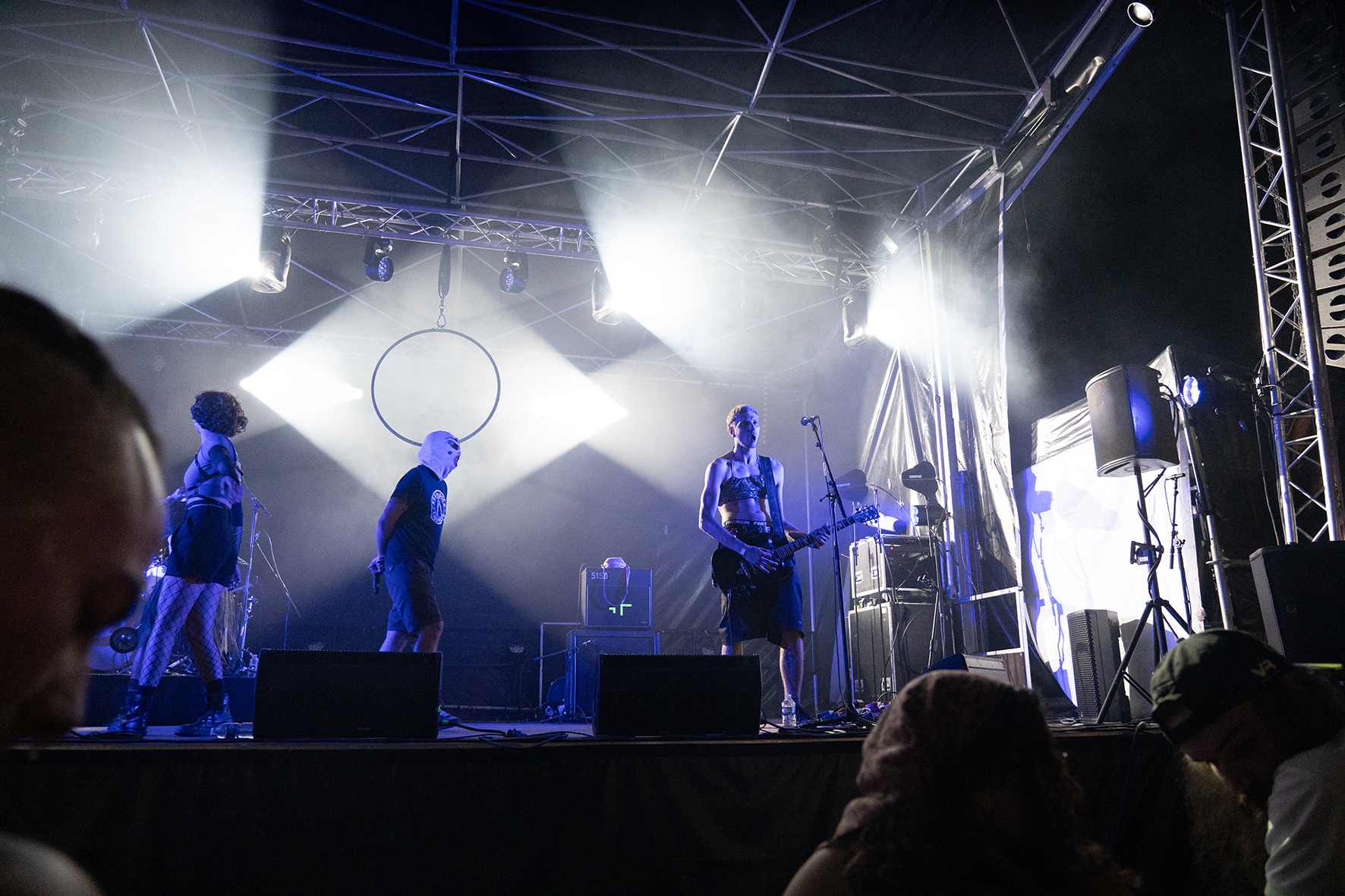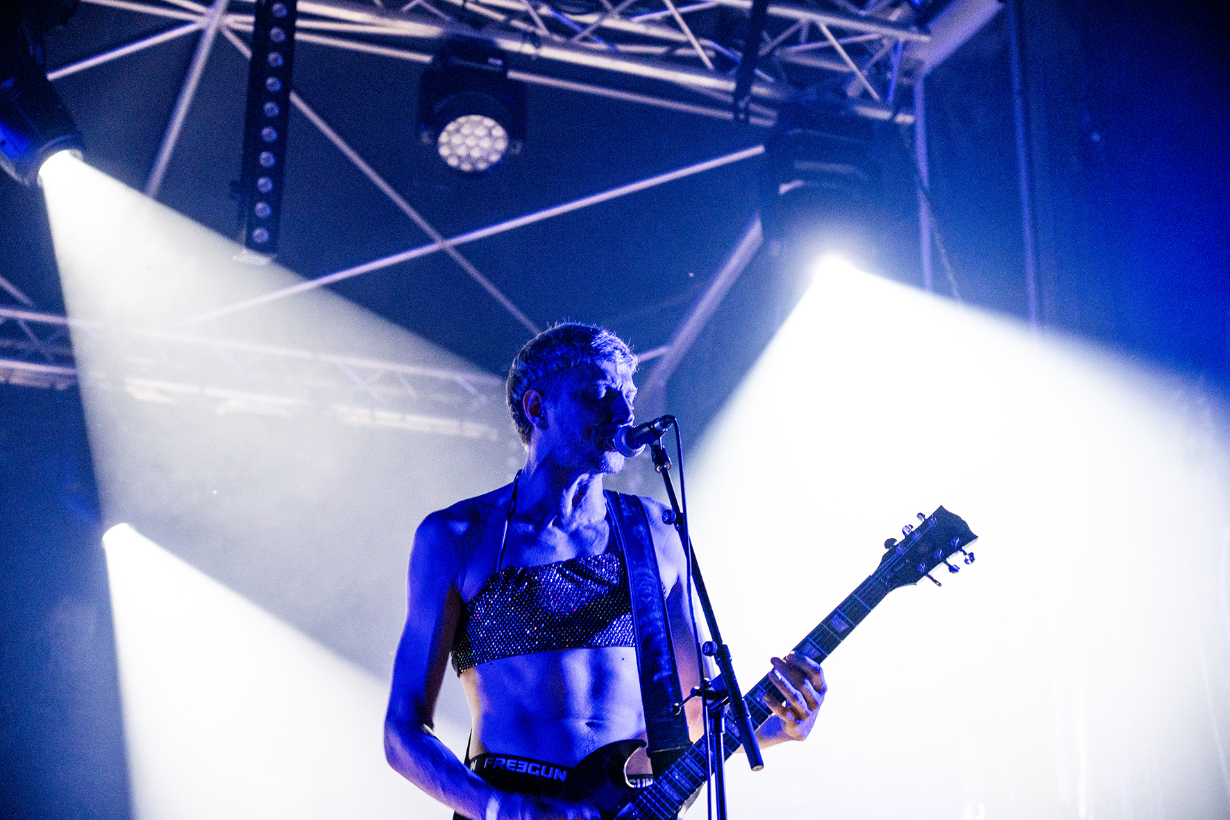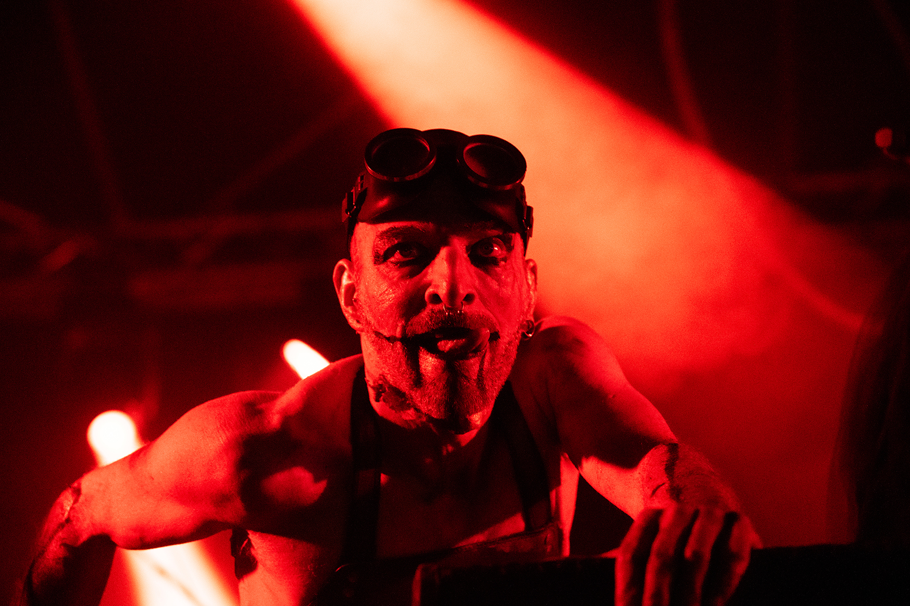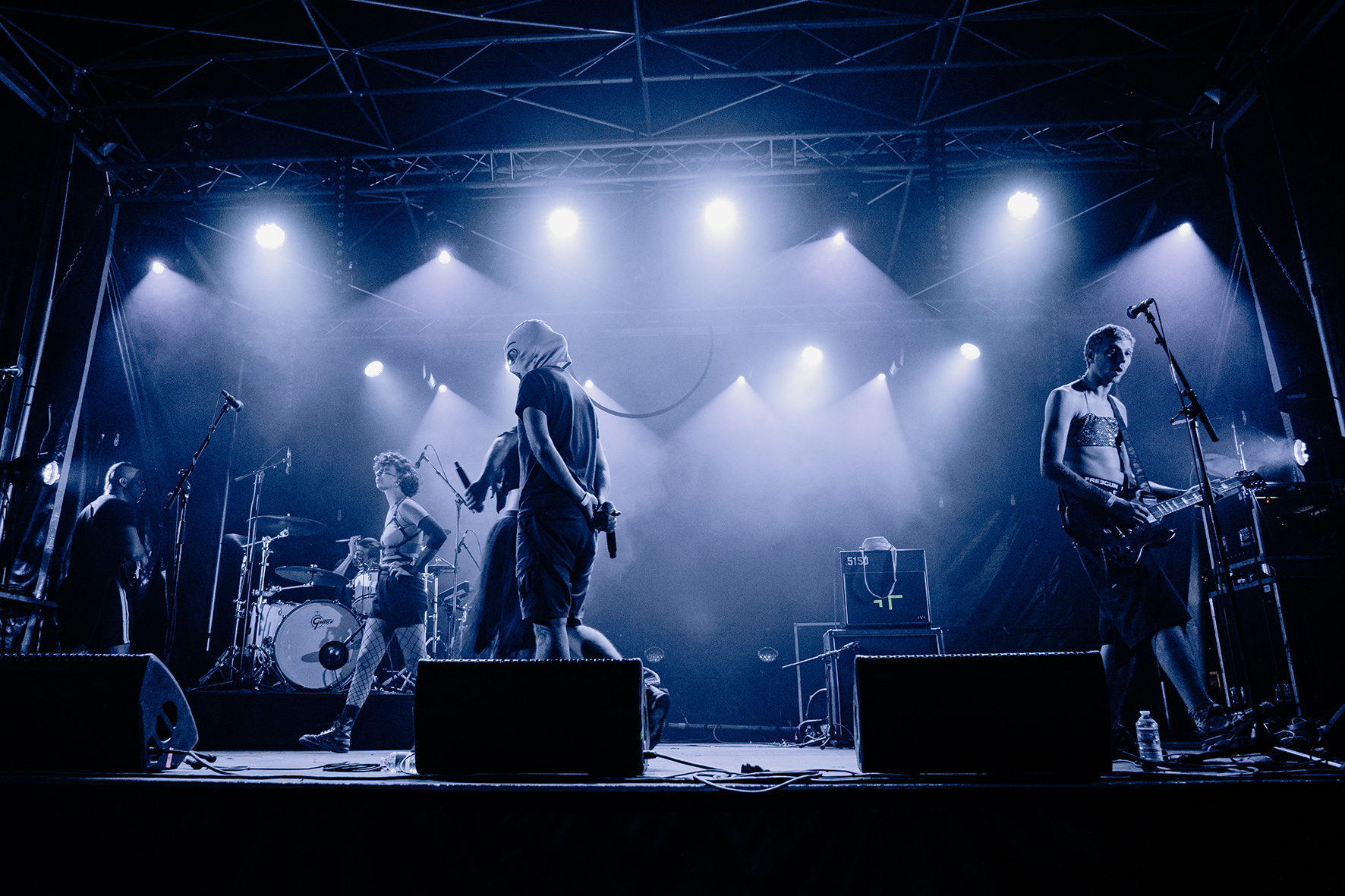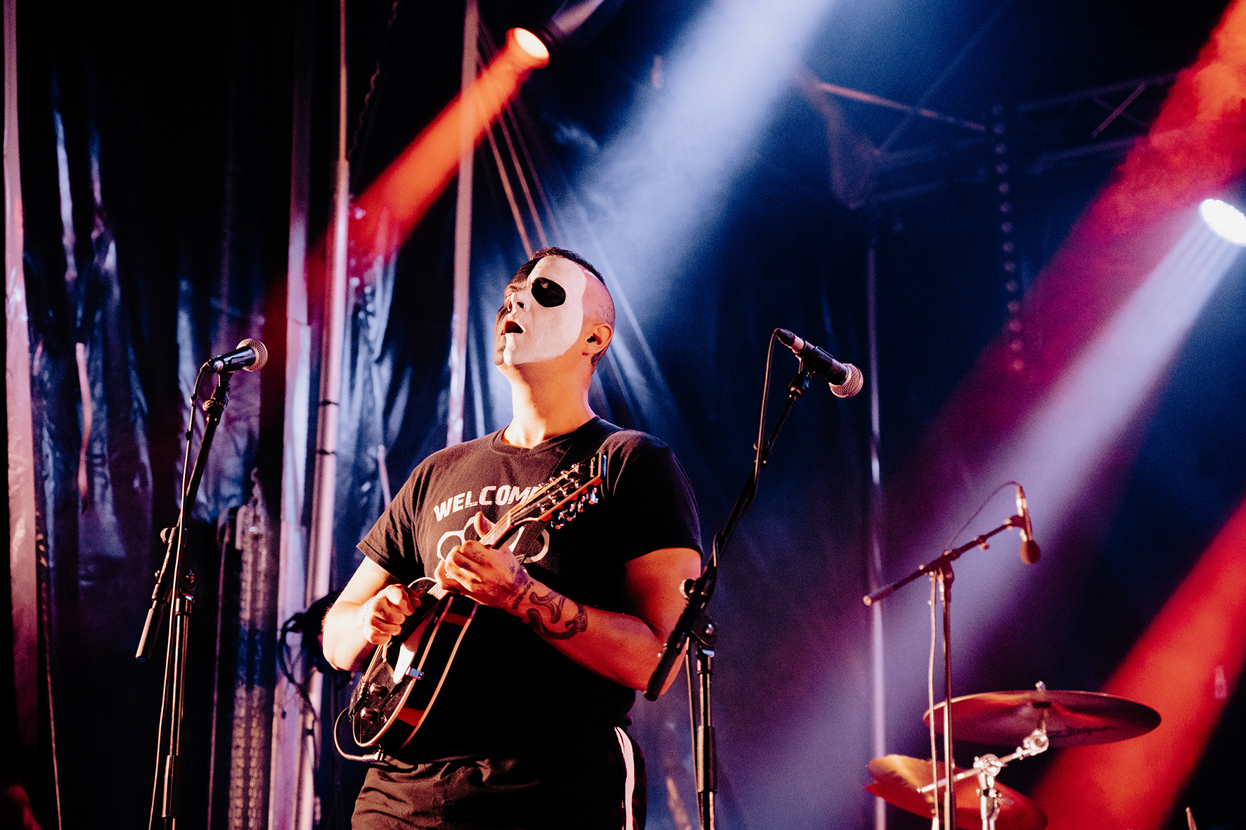 Il y a des concerts qui ne laissent pas indifférent, lorsqu’on fait de la photo. La troupe de Krave Boca oscille entre le show pyrotechnique et musicale, une recherche de la mise en scène extrême menée par une musique hurlante et rythmée. Les yeux et les oreilles sont sans cesse sollicités, pas de répit pour le corps non plus, en mouvement solitaire ou conduit par les vagues collectives, le corps bouge, exulte, se fatigue mais la troupe Krave Boca le soutient jusqu’au bout.